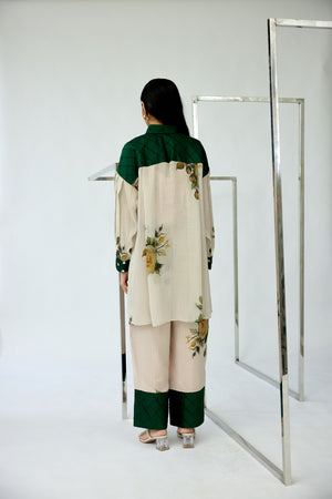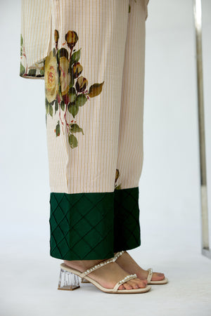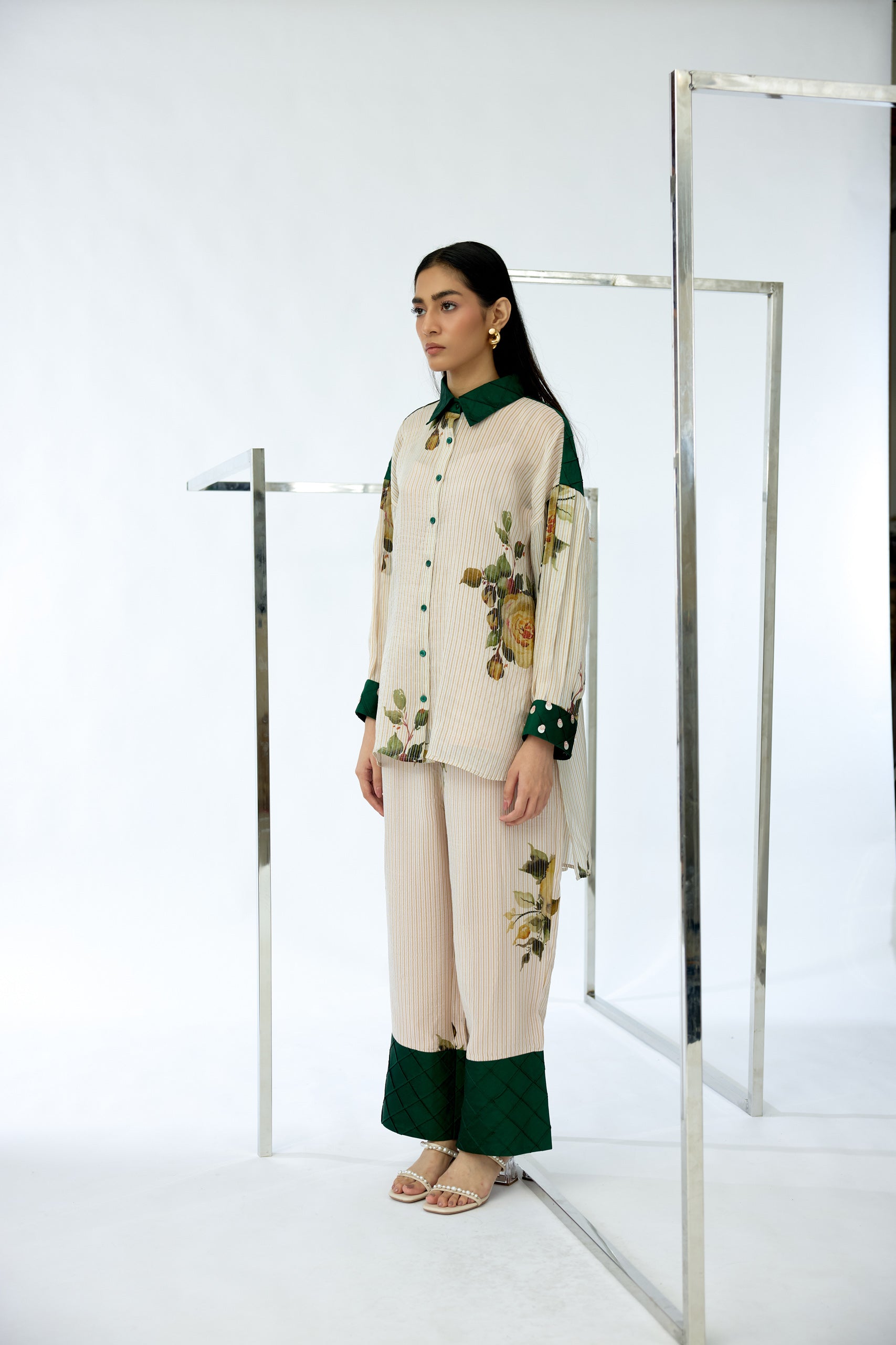 Tailored in premium lurex tissue and adorned with our exclusive hand-painted florals, these co-ords embody modern elegance with an artistic edge. Sophisticated yet versatile, they’re designed to transition seamlessly from refined daywear to statement evening looks.