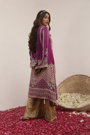 Russian cotton silk. The purple hue and bright mustard yellow accent creates