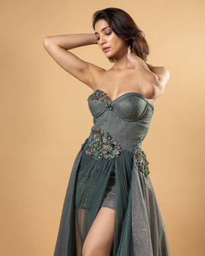 Featuring Sophie Fern Green Short Dress with de-attachable Bussel