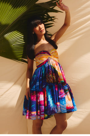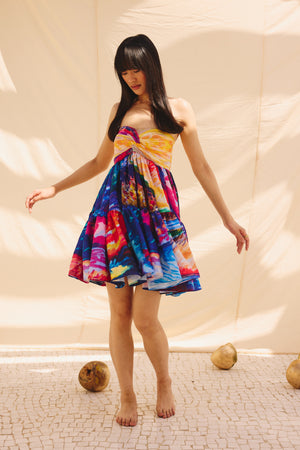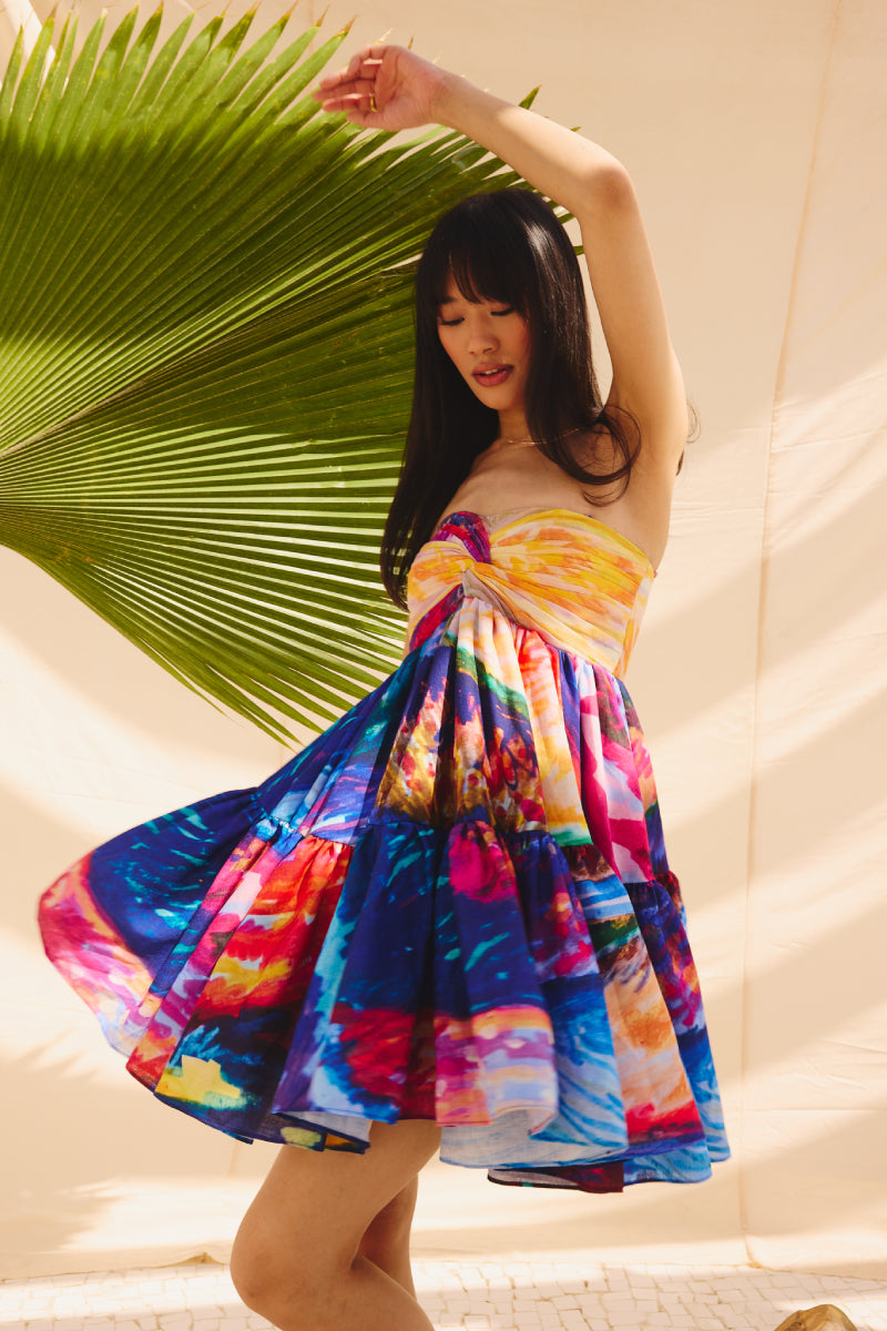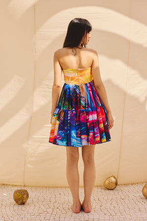 The dress includes two layers of gathers, creating delicate frills that