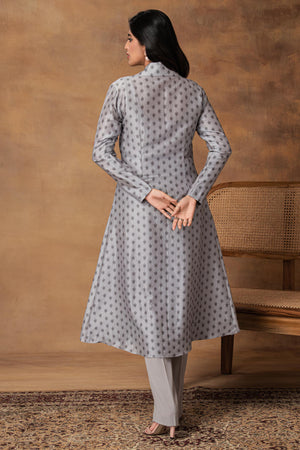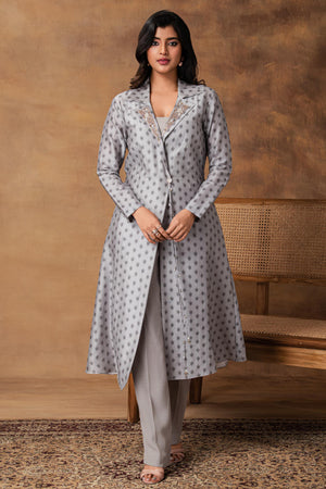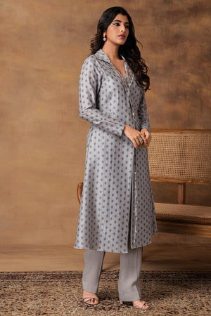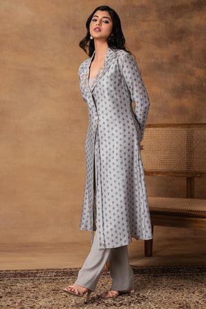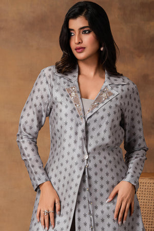 Steal Grey Printed Jacket Style Kurta Set