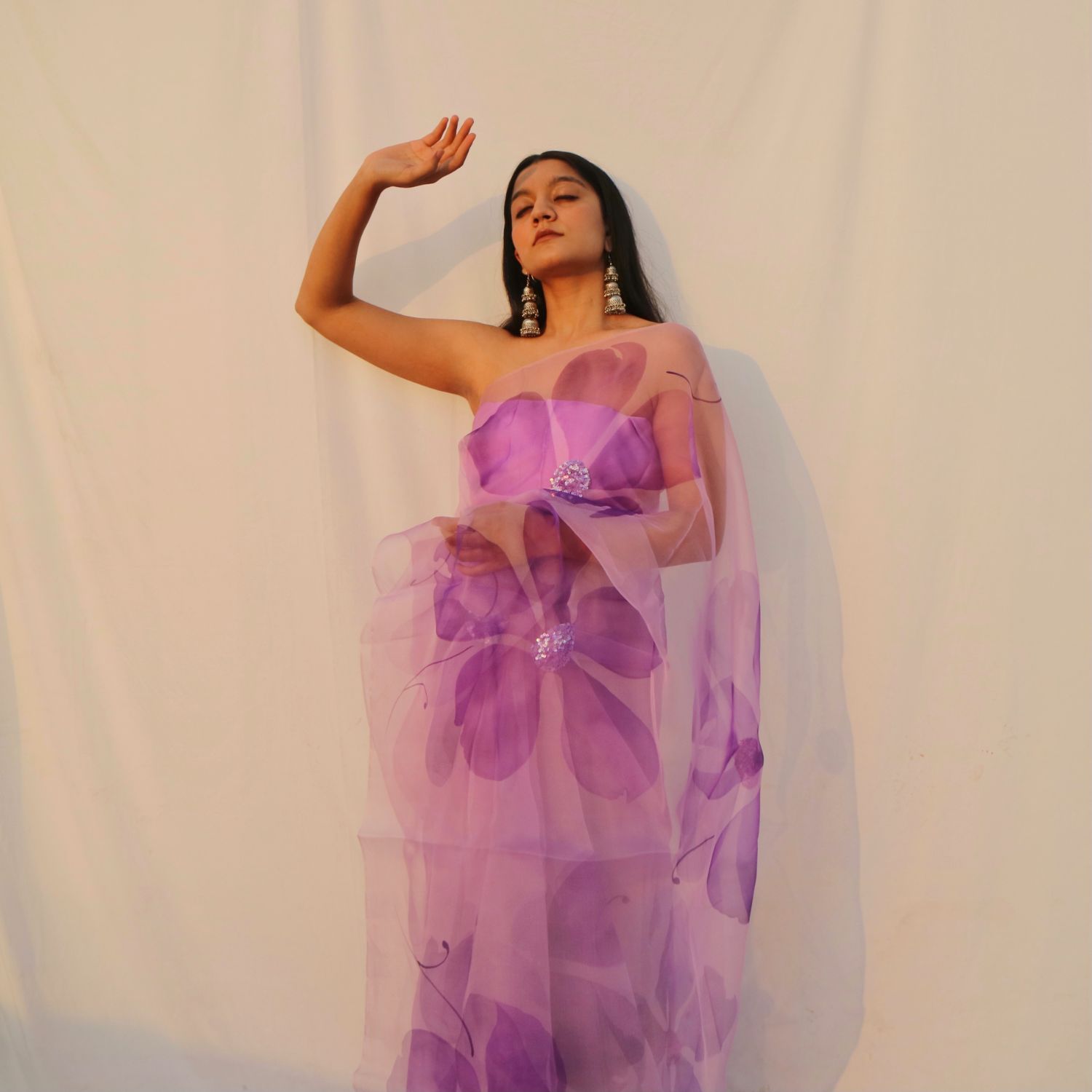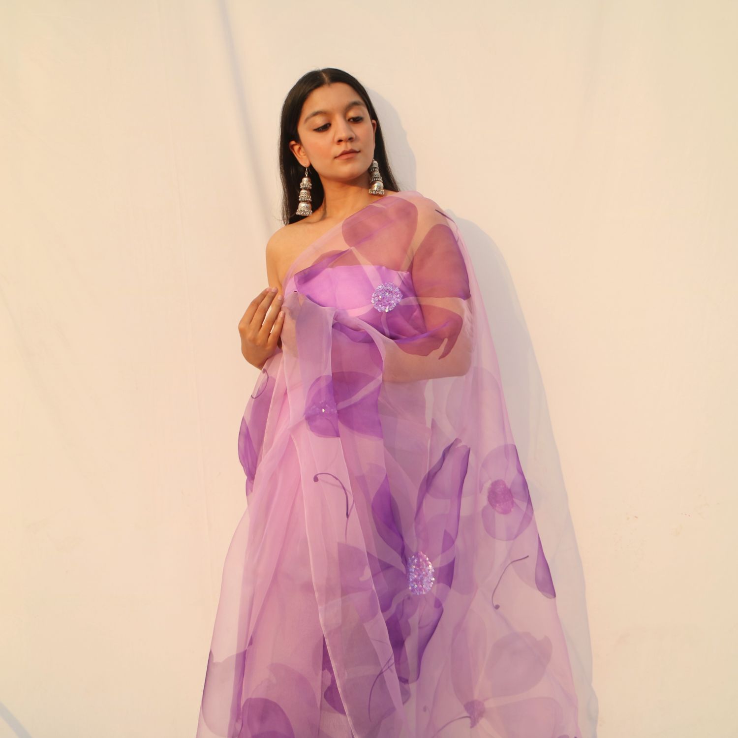 Lavender Base Pure Organza Saree, Enhanced With Sequins Work