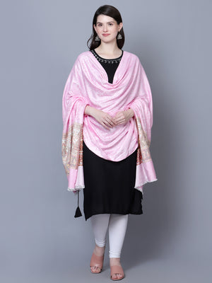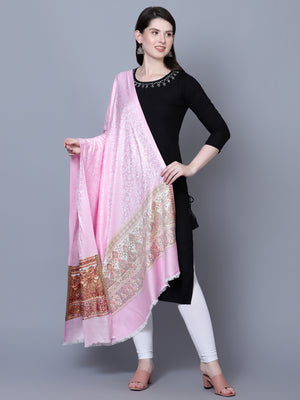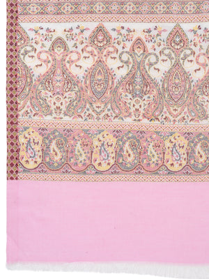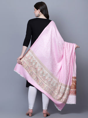 Women Fine Wool Self textured Royal Kashmiri Paisley Border