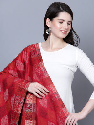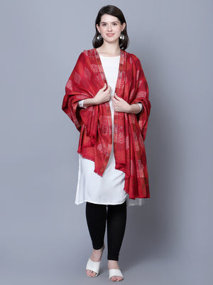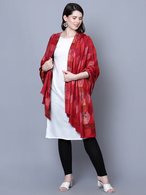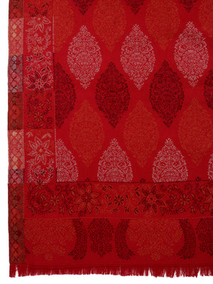 Women Fine Wool Jamawar Jaal Kaahmiri Red Shawl