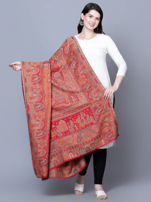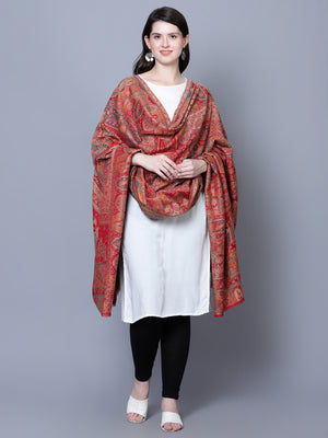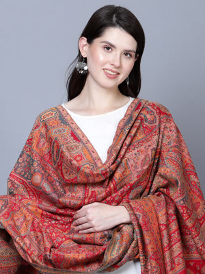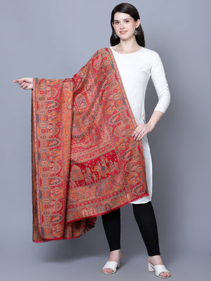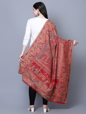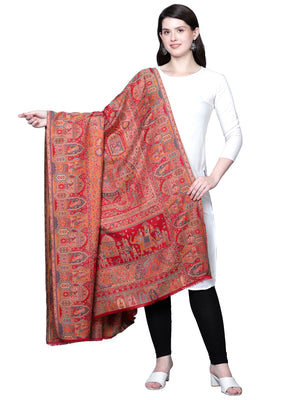 Women Fine Wool Mughal Darbar Kaani Jaal Pashmina Red Shawl