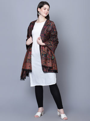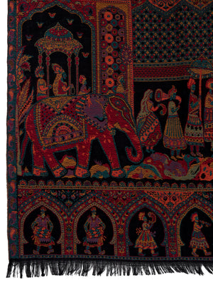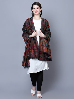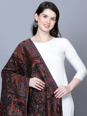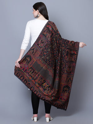Women Fine Wool Mughal Darbar Kaani Jaal Pashmina Black Shawl
