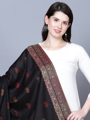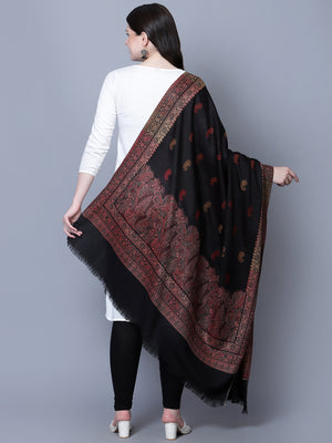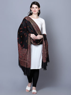 Women Royal Kashmiri Border with Paisley Jaal Fine Wool Black Shawl