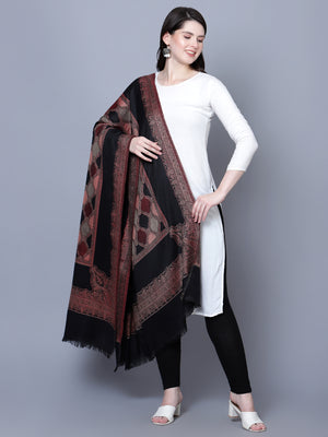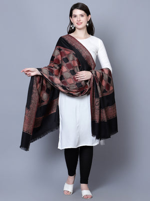 Women Fine Wool Jamawar Jaal Kashmiri Royal Border Black Shawl