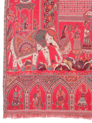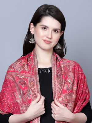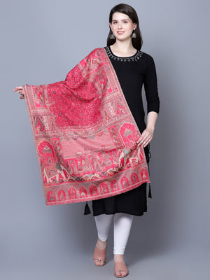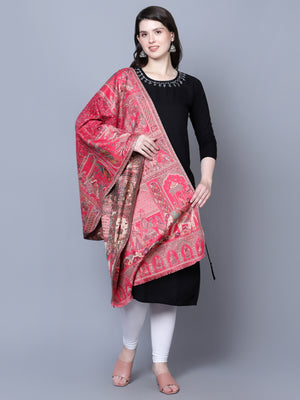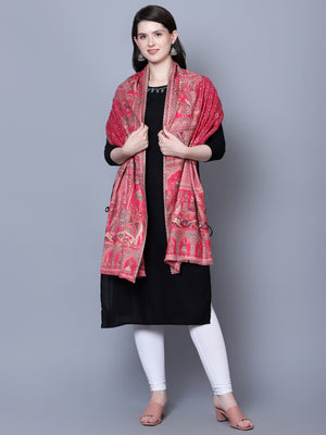 Women Fine Wool Mughal Darbar Kaani Jaal Pink Shawl