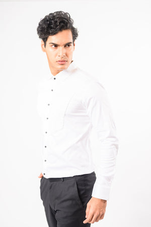 Featuring a White Straight Pintucks shirt cotton strech base fabric .This contains only one piece. Color of the actual garment may vary due to lighting conditions during the shoot .