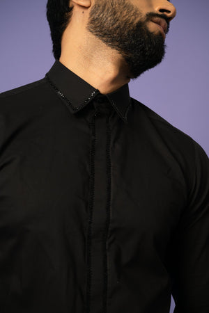 Featuring A Black Shirt With Katdana & Chid Work Detailings.