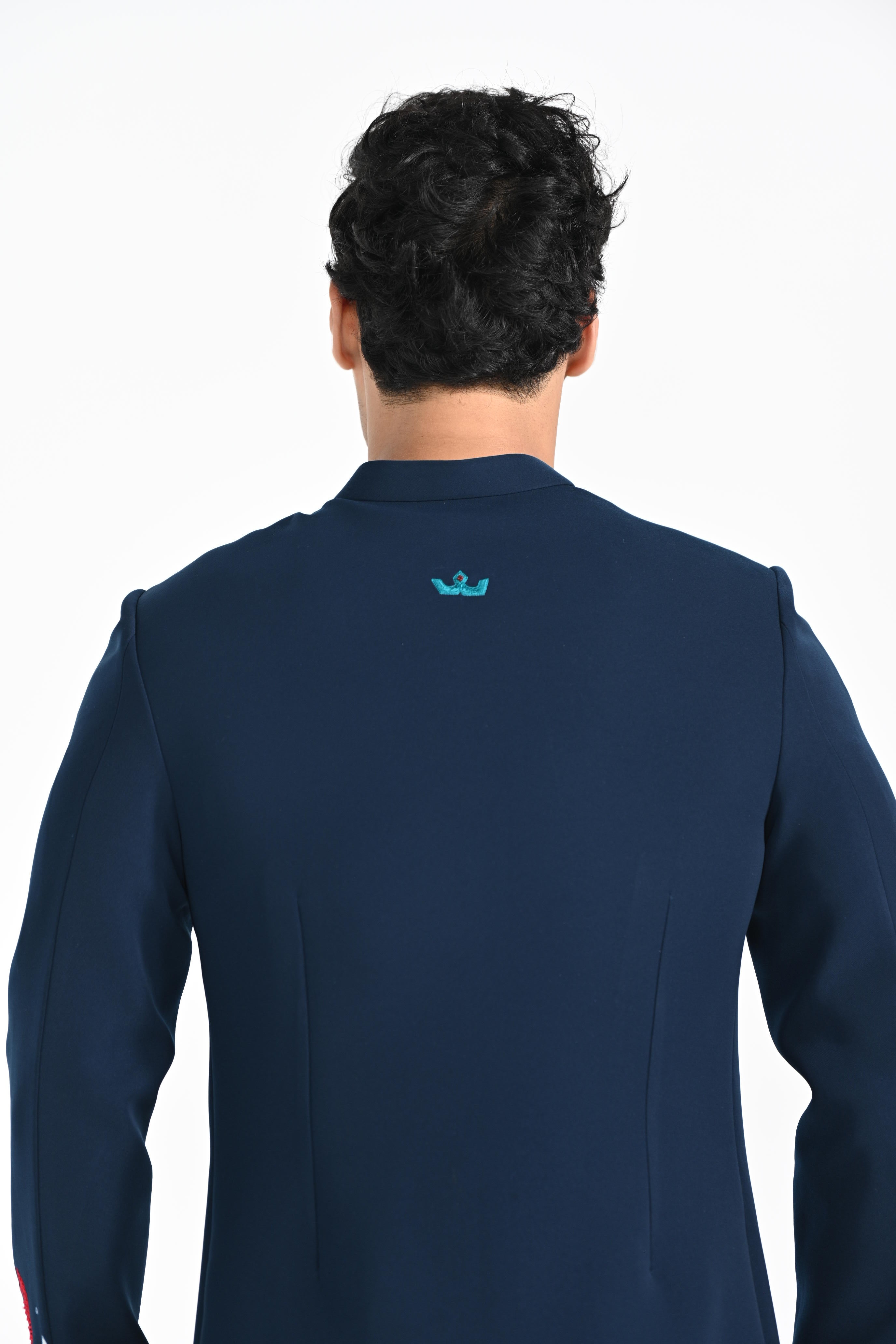Fabric: Achkan - Teal Blue Suiting Fabric, Trouser - White Suiting Fabric