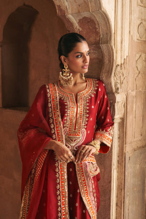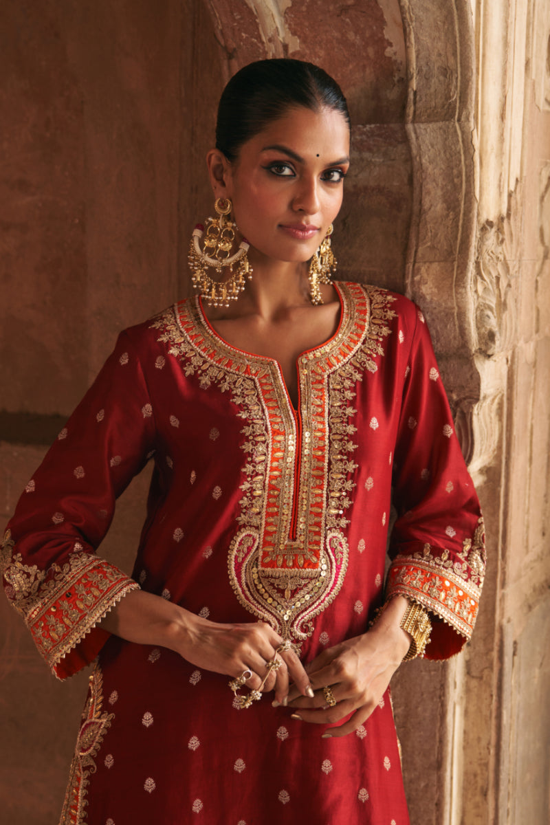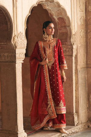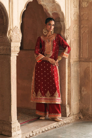 SUMAIRA - DEEP RED LONG KURTA WITH PALAZZO AND DUPATTA