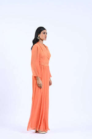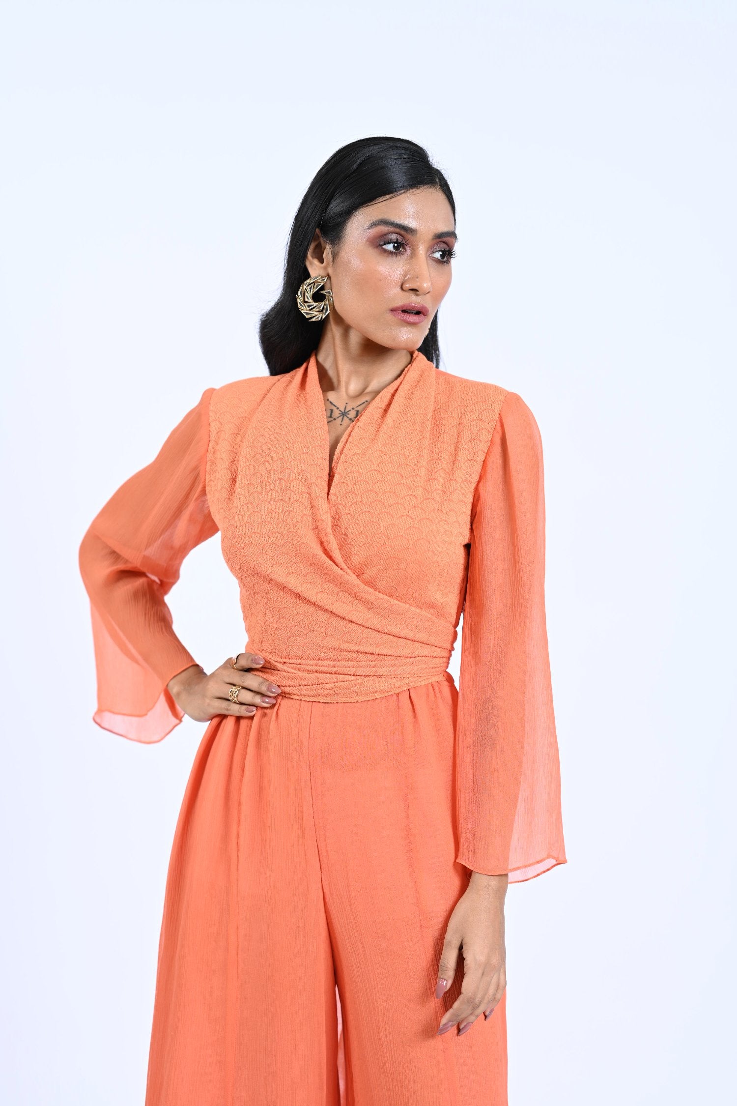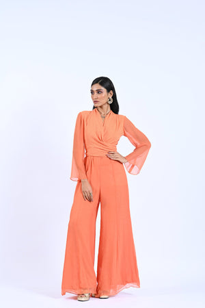 This stylish wrap around jumpsuit from Summer Blooms is made from lightweight, breathable fabric and features a flared leg for a chic silhouette. Its adjustable shoulder straps ensure a perfect fit, while side pockets and a stretchy waistband provide practical comfort.