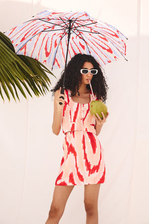 The mini A-line skirt features a slight flare, creating a flattering silhouette with movement.