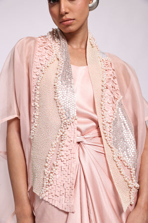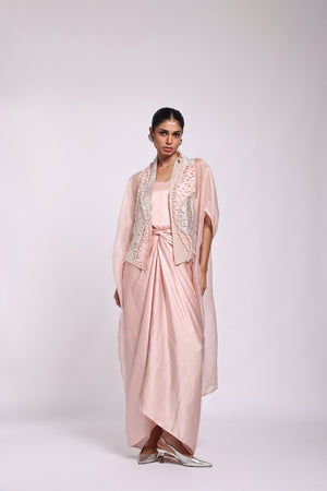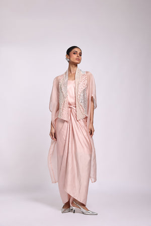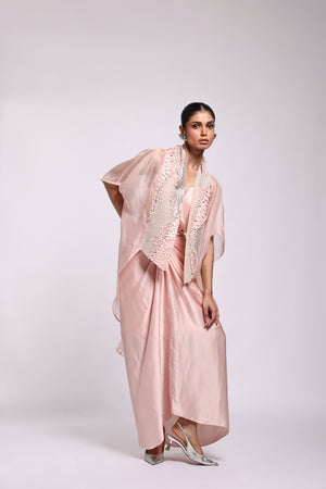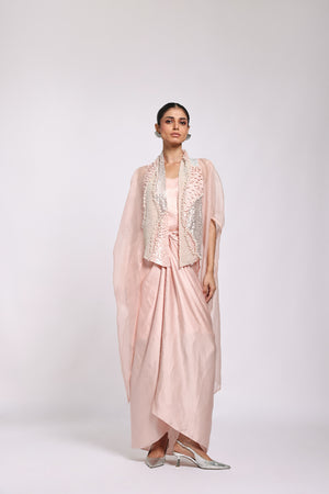 Organza Kaftan With Embroidery In The Front Panel Paired With Sarong Dress