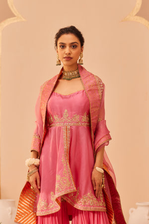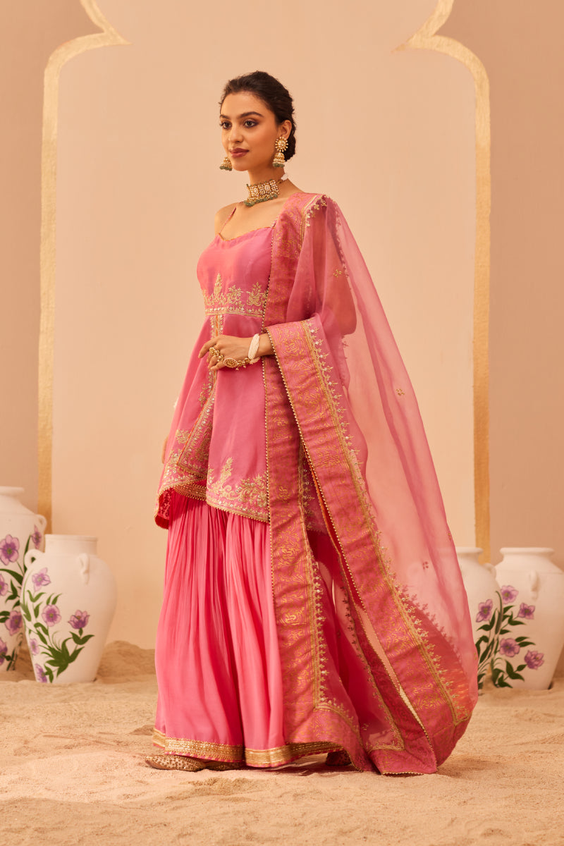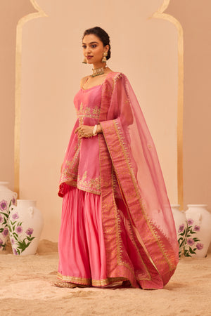 Tahira- Short High-Low Kurta With Garara And Dupatta