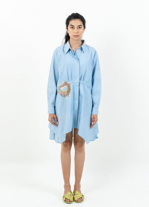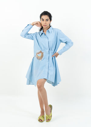 Handmade Embroidery, Collar Neck, A-line Cut, Gathers Detailing & Please note slight variations in color as every piece is hand-dyed