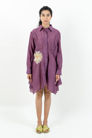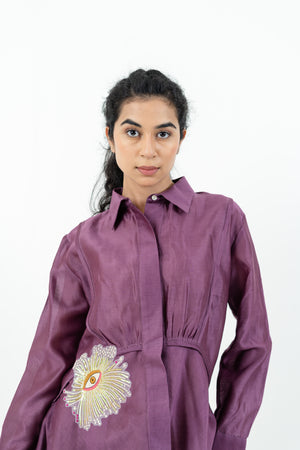 Handmade Embroidery, Collar Neck, A-line Cut, Gathers Detailing & Please note slight variations in color as every piece is hand-dyed