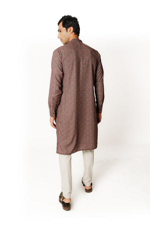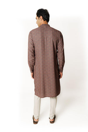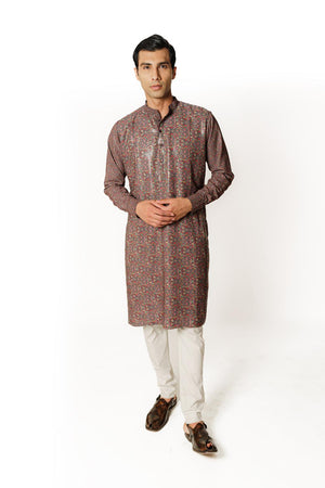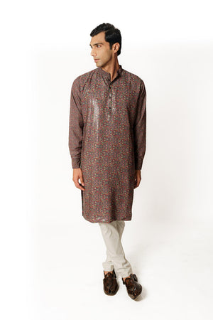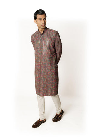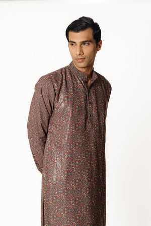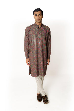 TEAL PRINT 1/2 SHEETING 1/2 GORGETTE W CREPE LINING KURTA W COTTON SILK PANT