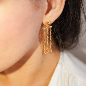 Textured motif necklace with coloured zircons. It is unique, stylish, statement and yet super versatile. Handcrafted on 92.5 silver coated with 18k gold. It is easy to style for the day or evening look. Perfect for cocktail dresses or casual day dresses even. Wear them with sweater dresses r white shirts too!