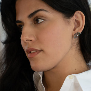 Textured motif pendant necklace with coloured zircons. It is unique, stylish, statement and yet super versatile. Handcrafted on 92.5 silver coated with an antique finish. It is easy to style for the day or evening look. Perfect for cocktail dresses or casual day dresses even. Wear them with sweater dresses r white shirts too!