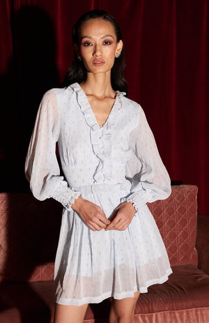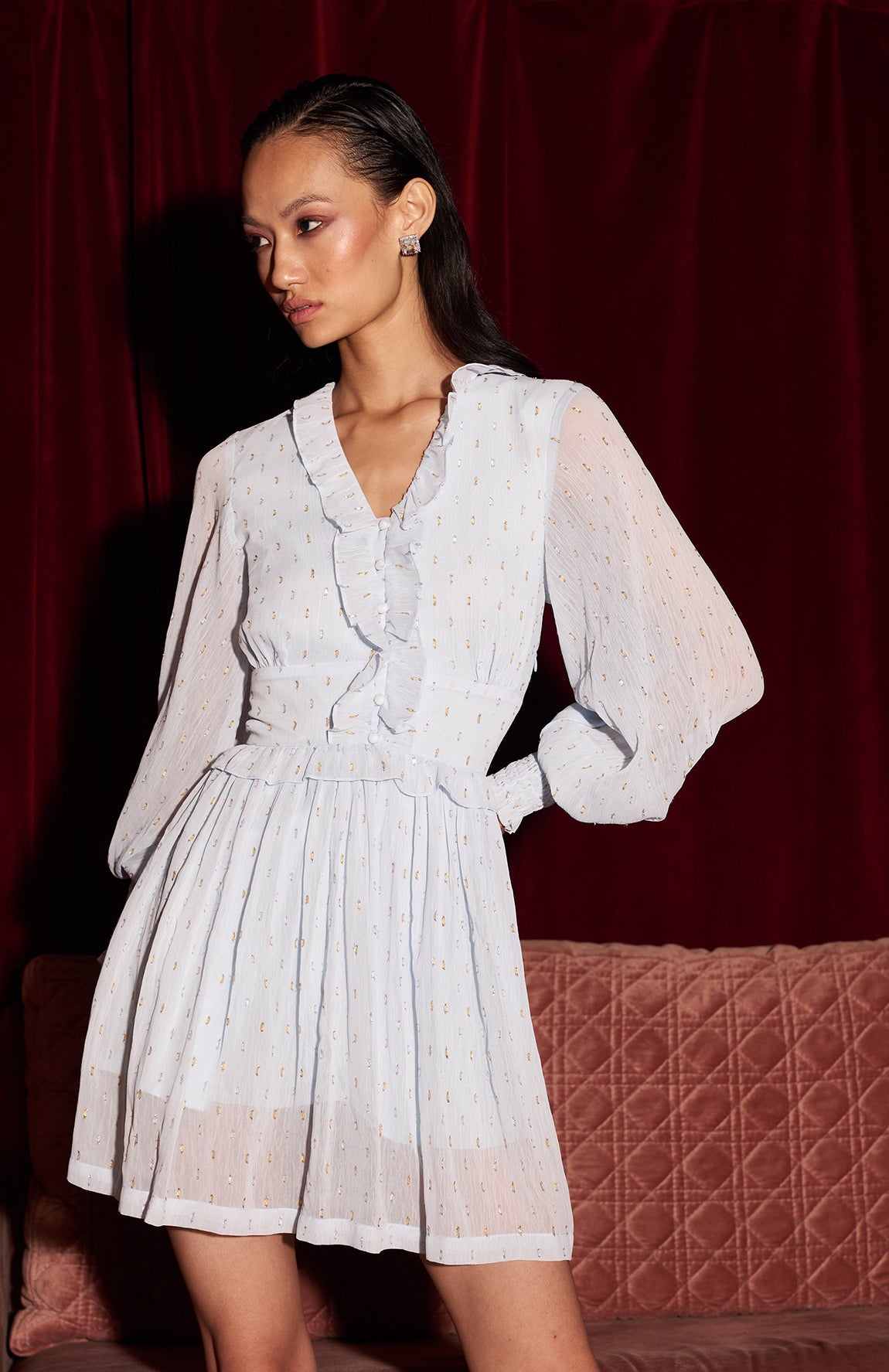Dive into sophistication with our lurex chiffon dress. This dress shimmers with allure, featuring a delicate lurex chiffon fabric that adds a touch of glamour and elegance to your look