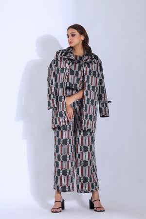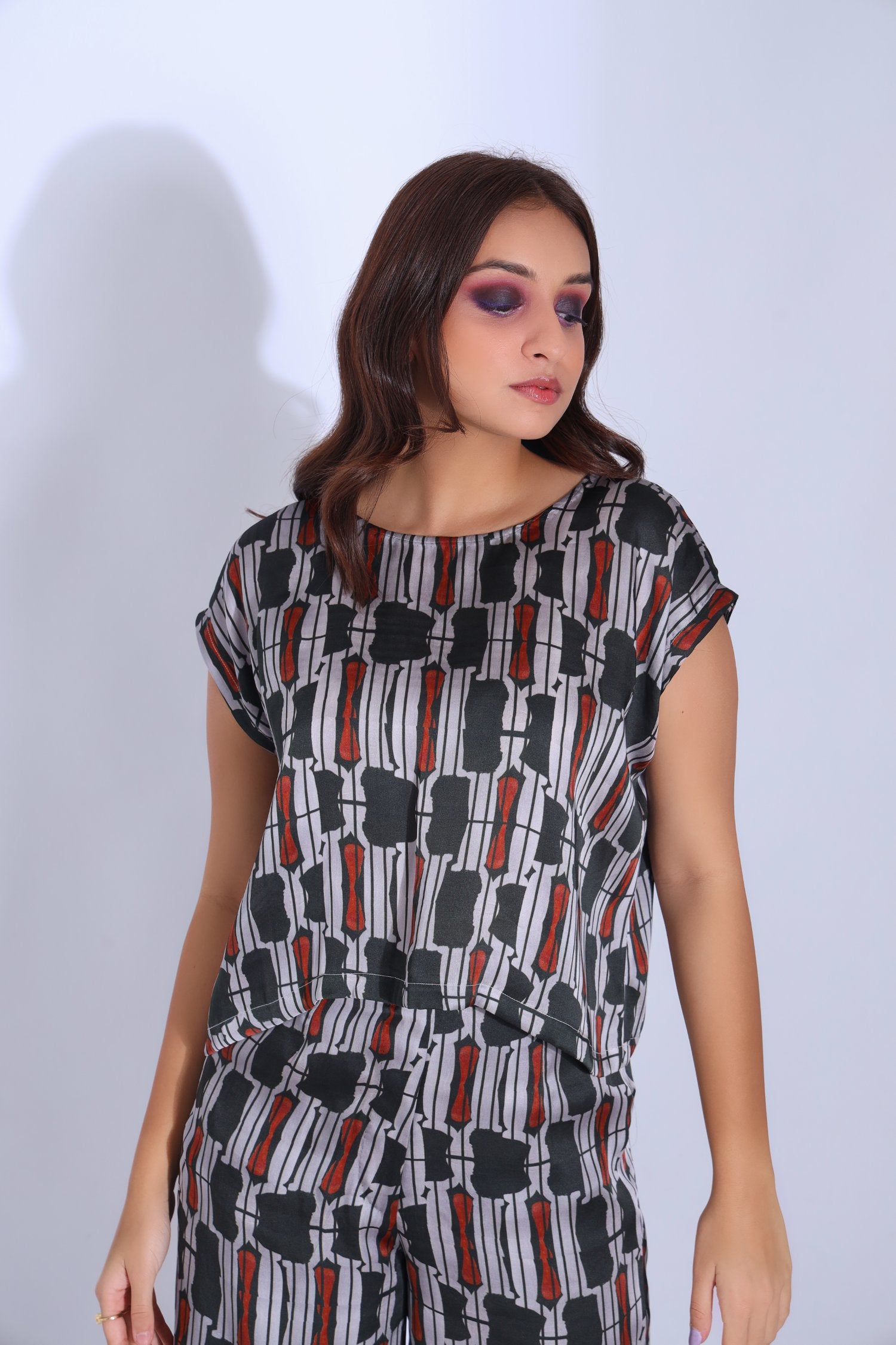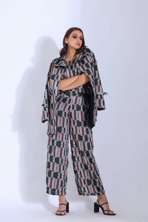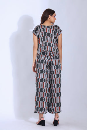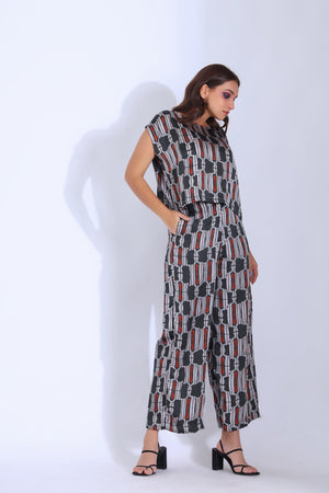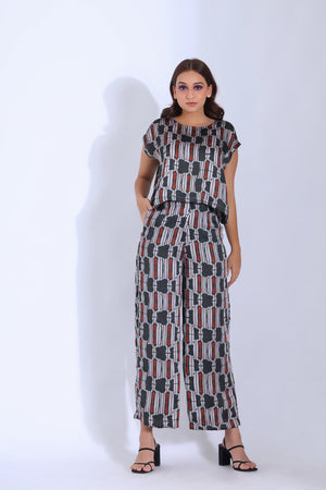 Featuring A Drop Shoulder Top With An Asymmetric Hemline Paired With An Ankle Length Straight Pants