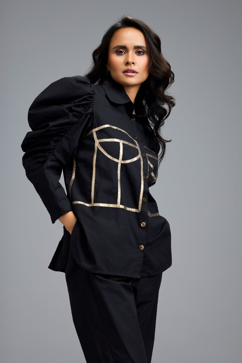 Chic White Shirt With Puff Sleeves, Corset Detailing