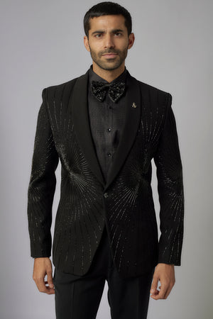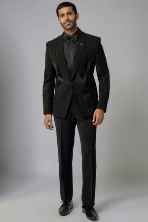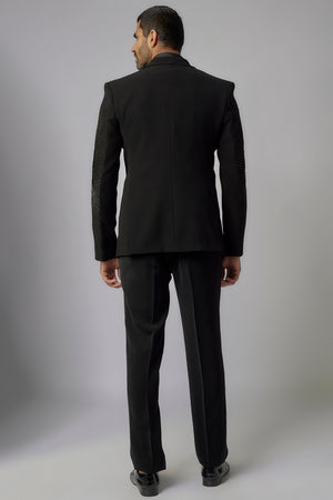 Jet Black Scattered Hand Embroidered Tuxedo Set