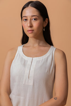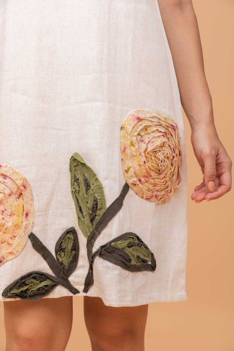 Elevate Your Look With This Beautiful Tunic, Crafted From Rich Twill Khadi For A Blend Of Comfort And Style. Featuring A Round Neck And Intricate Detailing At The Neckline, This Piece Is Adorned With Flowers Made From Eco-Printed Waste Fabric, Highlighting Our Commitment To Sustainability By Recycling Materials. Thoughtfully Designed With Eco-Conscious Practices, This Tunic Combines Elegant Craftsmanship With A Deep Respect For The Environment, Making It A Perfect Addition To Any Eco-Friendly Wardrobe.
