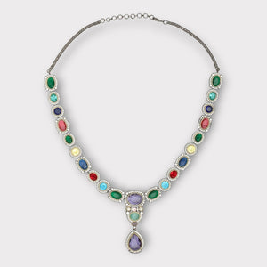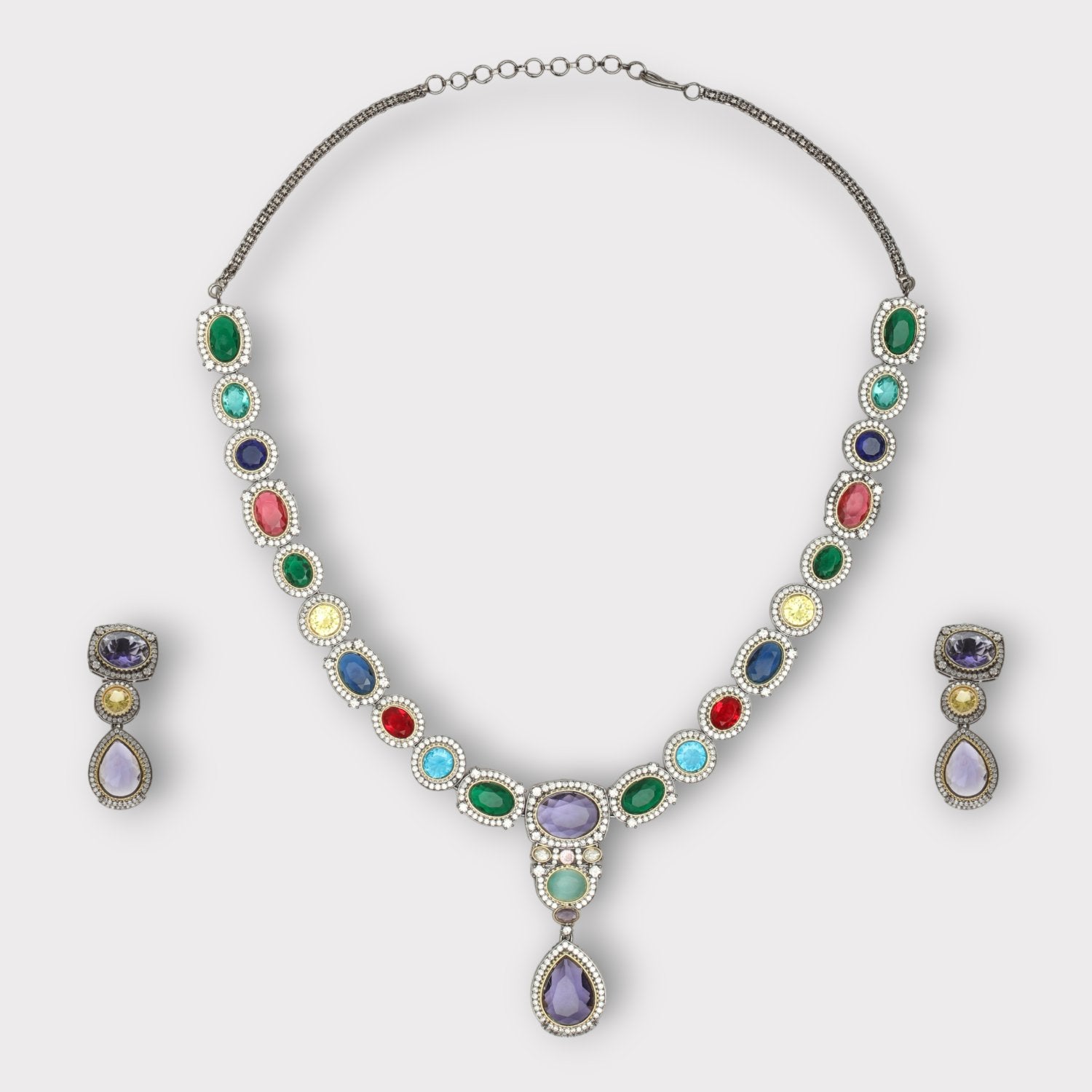 Two Tone Finish Kundan Polki & Green Beaded Choker Necklace Set