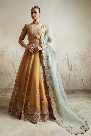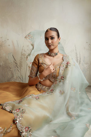 Thread And Zardozi Work On Organza Lehenga And Dupatta With Silk Blouse