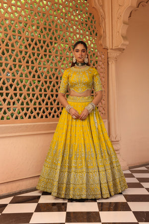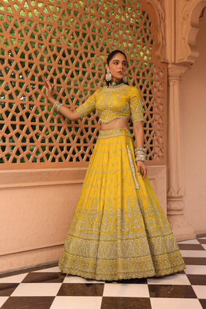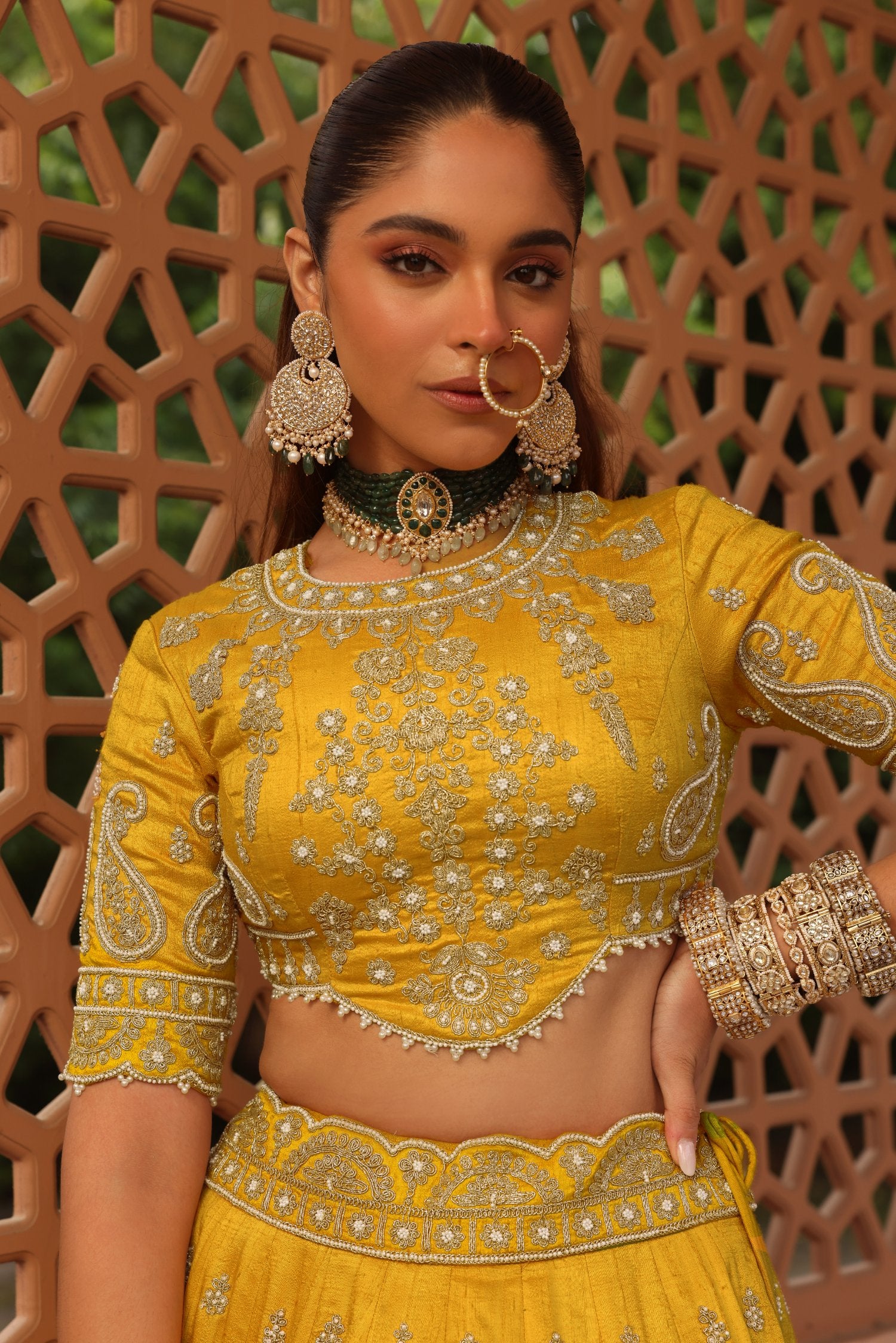 Uzma - Mustard Lehenga with Blouse and Dupatta