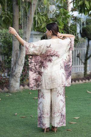 The print for this Kaftaan set is inspired by the beauty of jungles and trees, the
