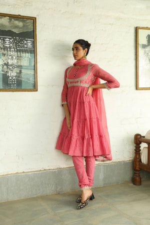 The dusty pink color, in our vardaah kurta set, represents femininity and warmth, making it an ideal choice for festivities, celebrations, or any special gathering.