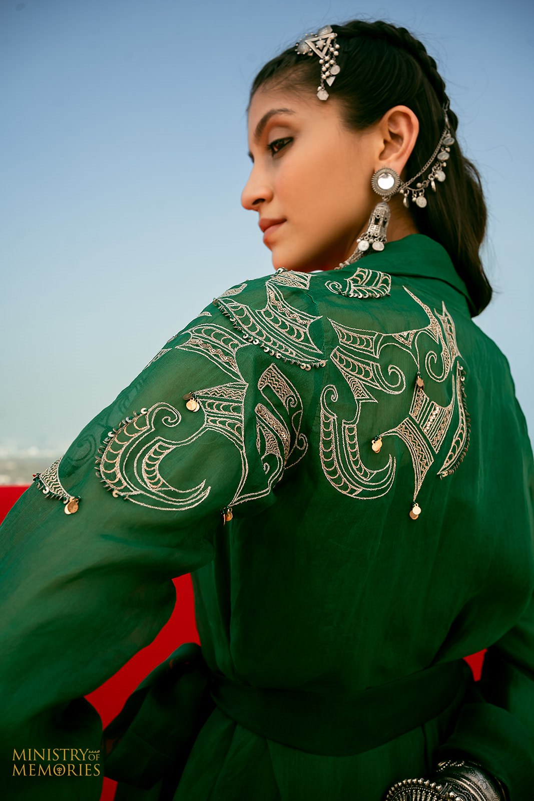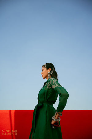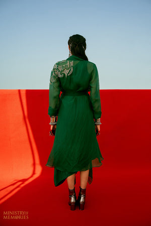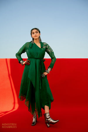 One Shoulder Drape Dress With A Hand Embordered Work On A Jacket