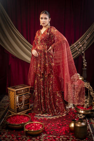 this set is highlighted with intricate embroidery including dull gold ginni, cut dana, sequins etc.