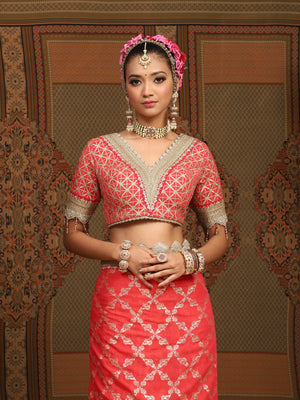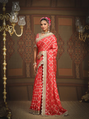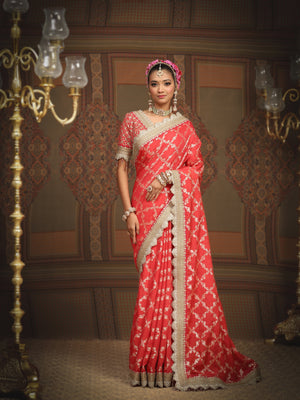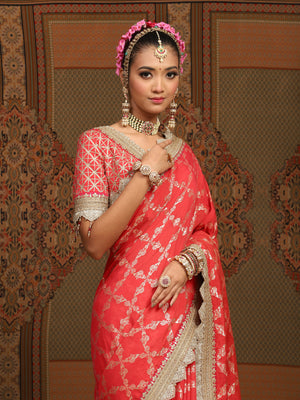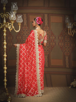 Watermelon Red And Red Saree & Blouse Set