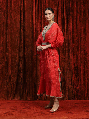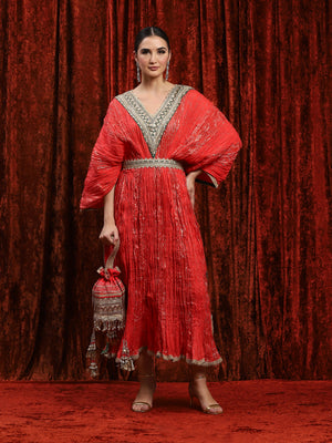 WaterMelon Red & Emerald Green Crinkle Kaftan & Belt Set
