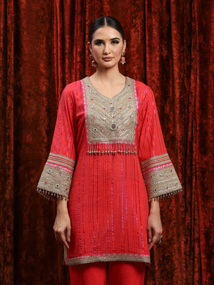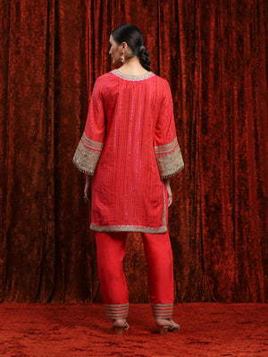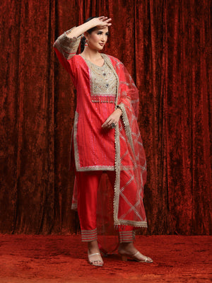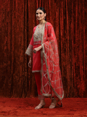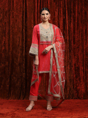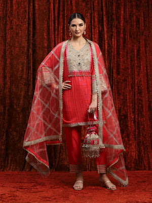 Watermelon Red & Rani Pink Kurta Pant Dupatta Set