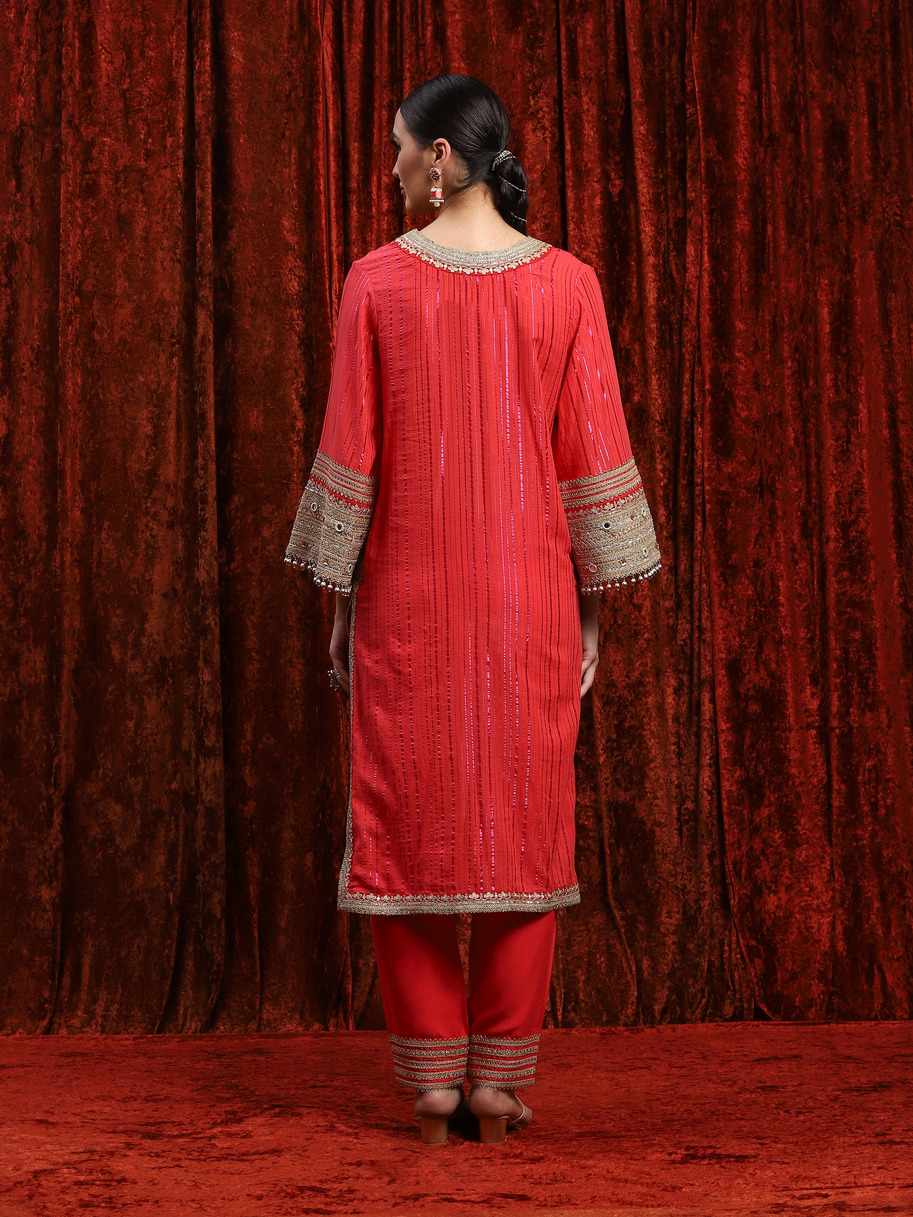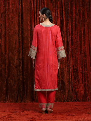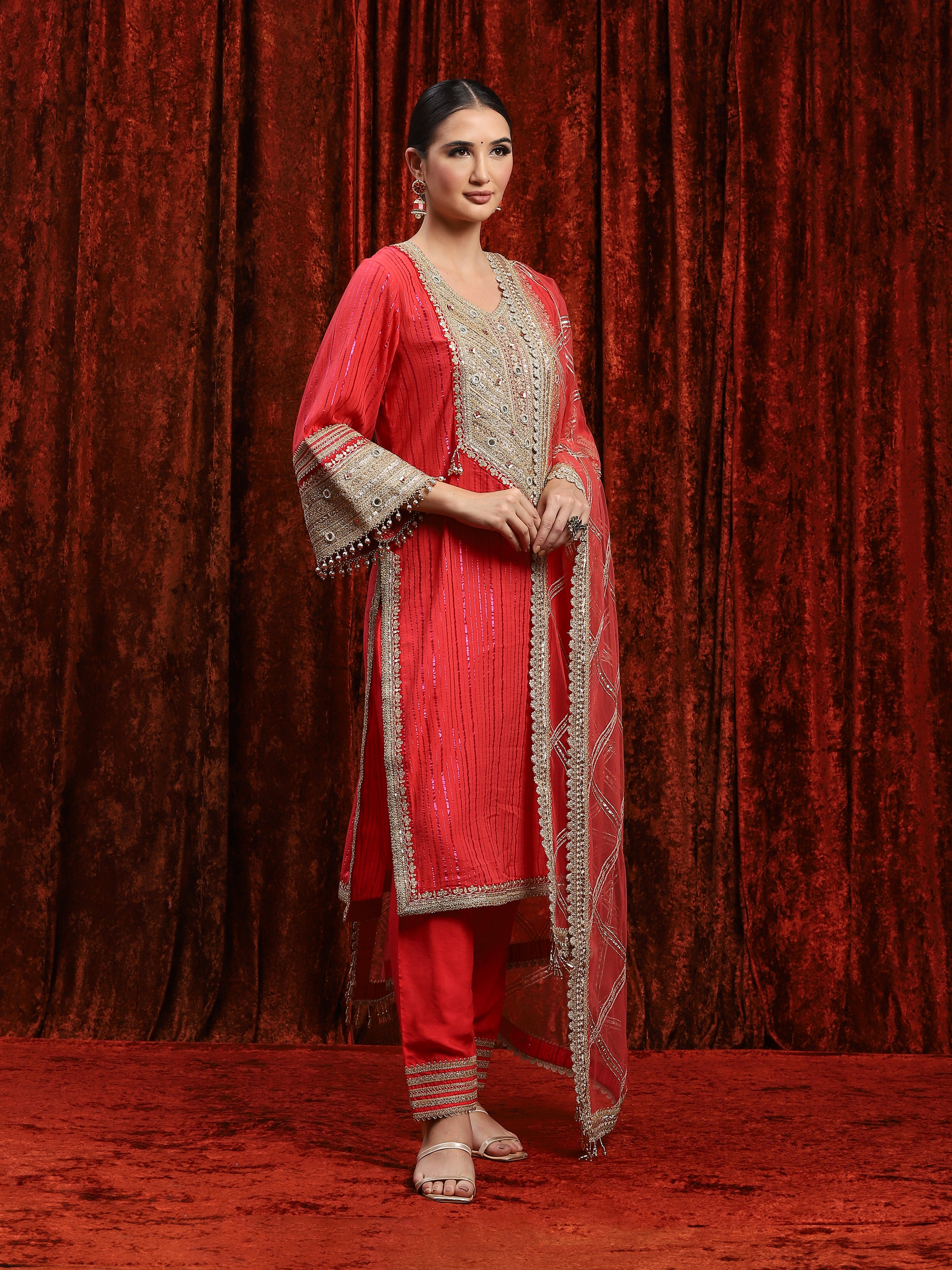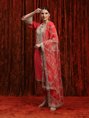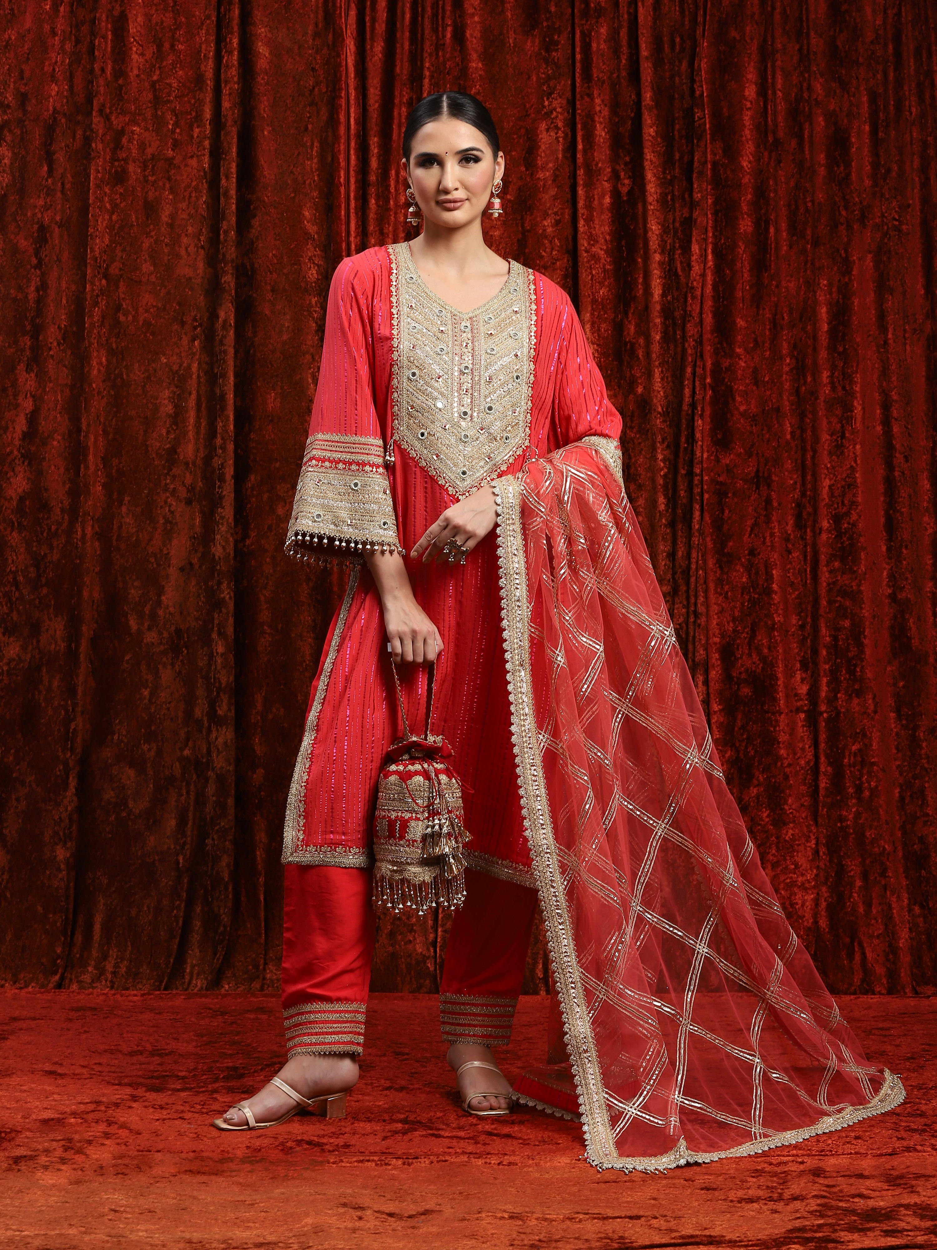 Watermelon Red & Red Kurta Pant Dupatta Set