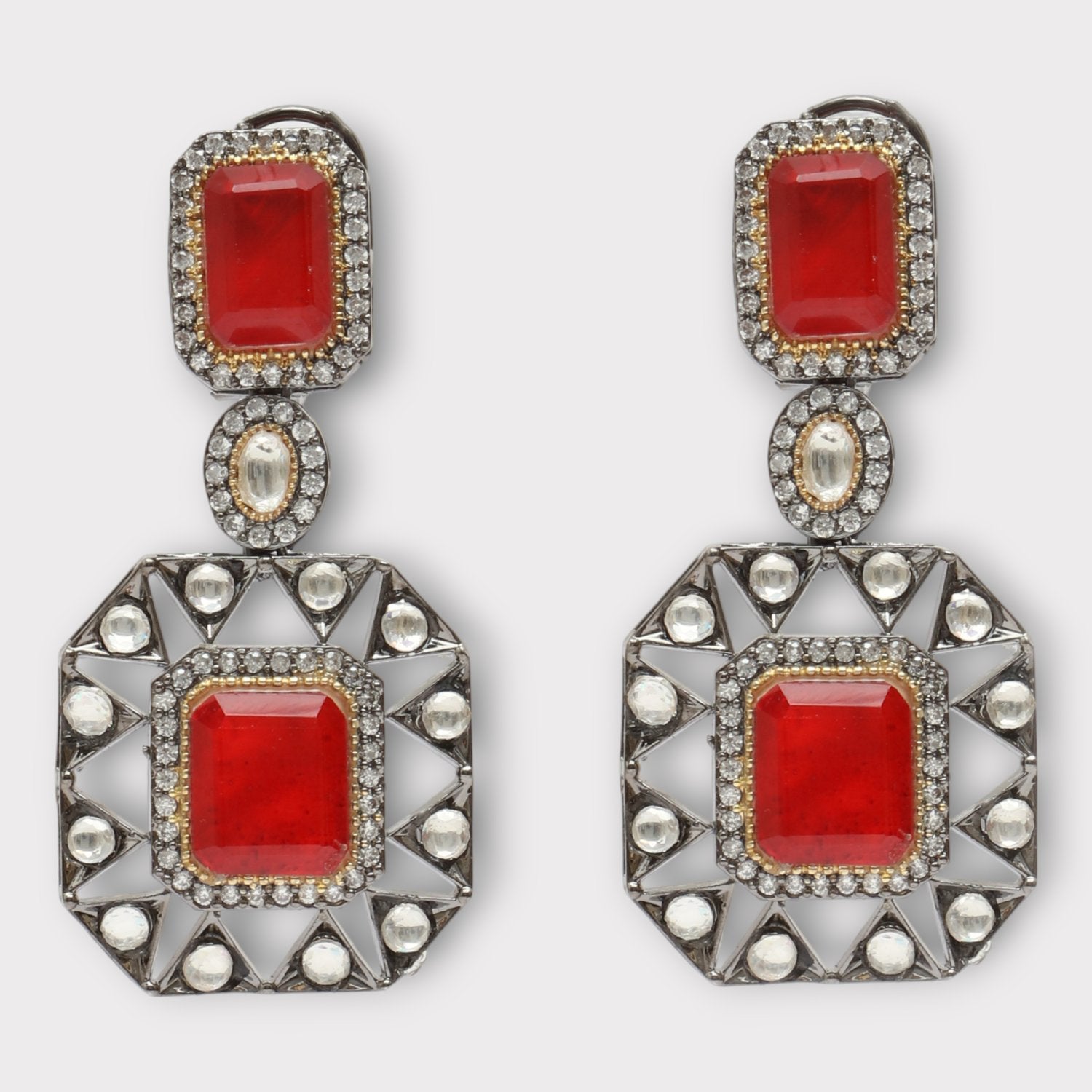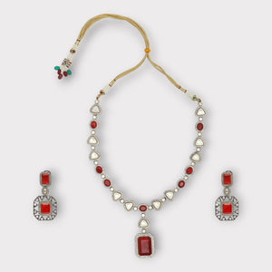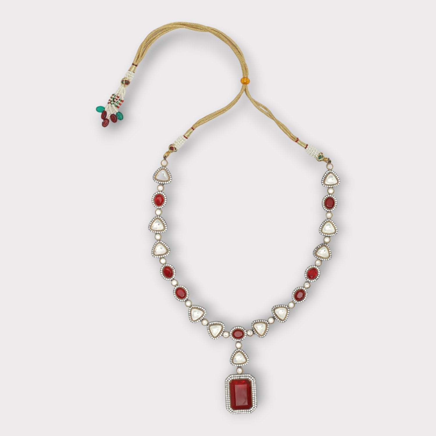 White Finish Faux Diamond & Emerald Synthetic Stone Necklace Set