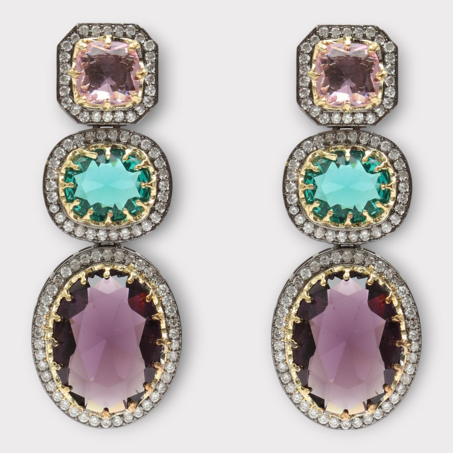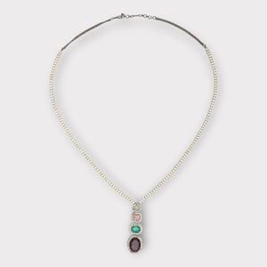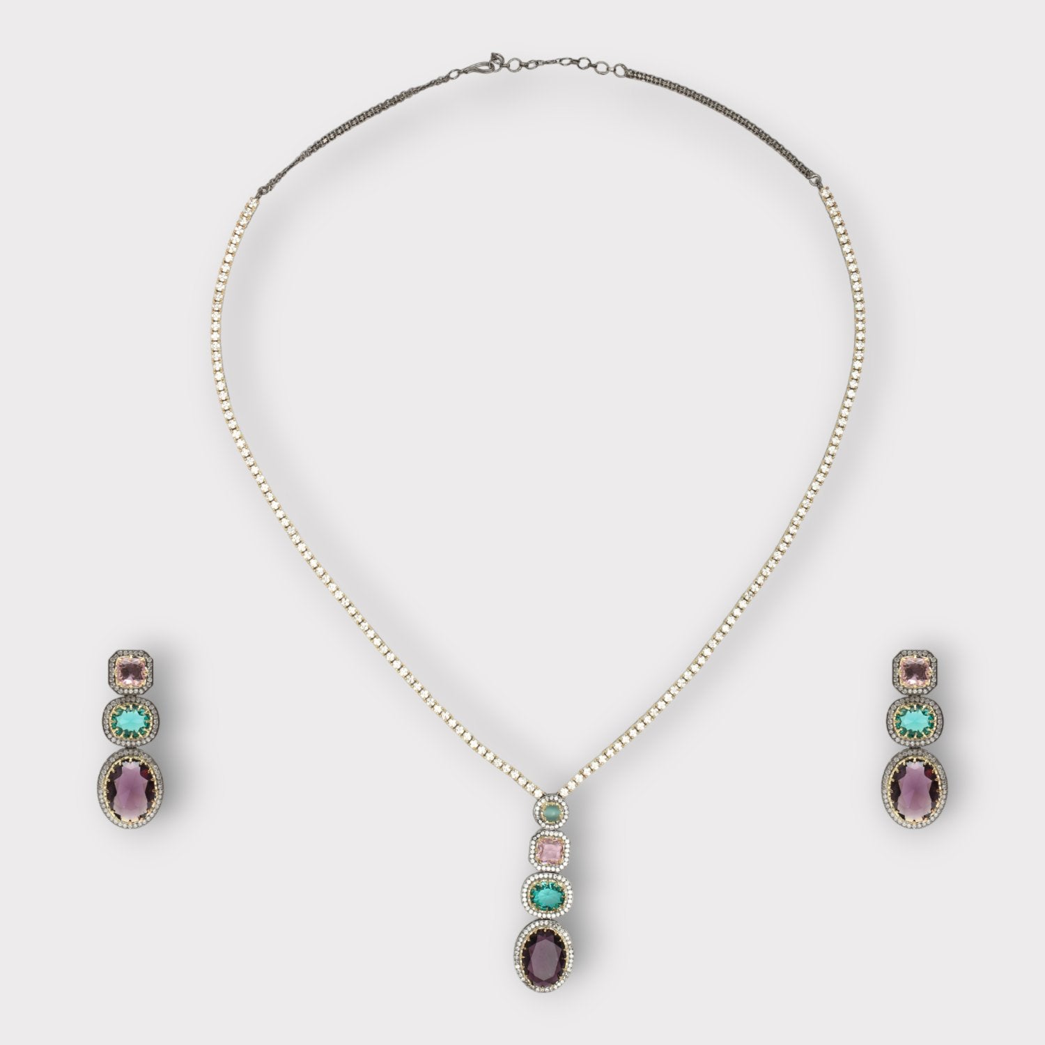 White Finish Faux Diamond & Synthetic Stone Necklace Set
