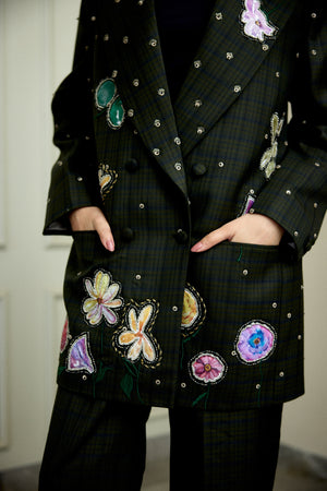 Enhance your wardrobe with the Wildflower Blazer, a chic black blazer embellished with detailed floral embroidery. This elegant piece marries timeless tailoring with subtle decorative accents, ideal for presenting a refined look at any event. Its sophisticated design delivers a poised, graceful silhouette that effortlessly enhances your personal style.
