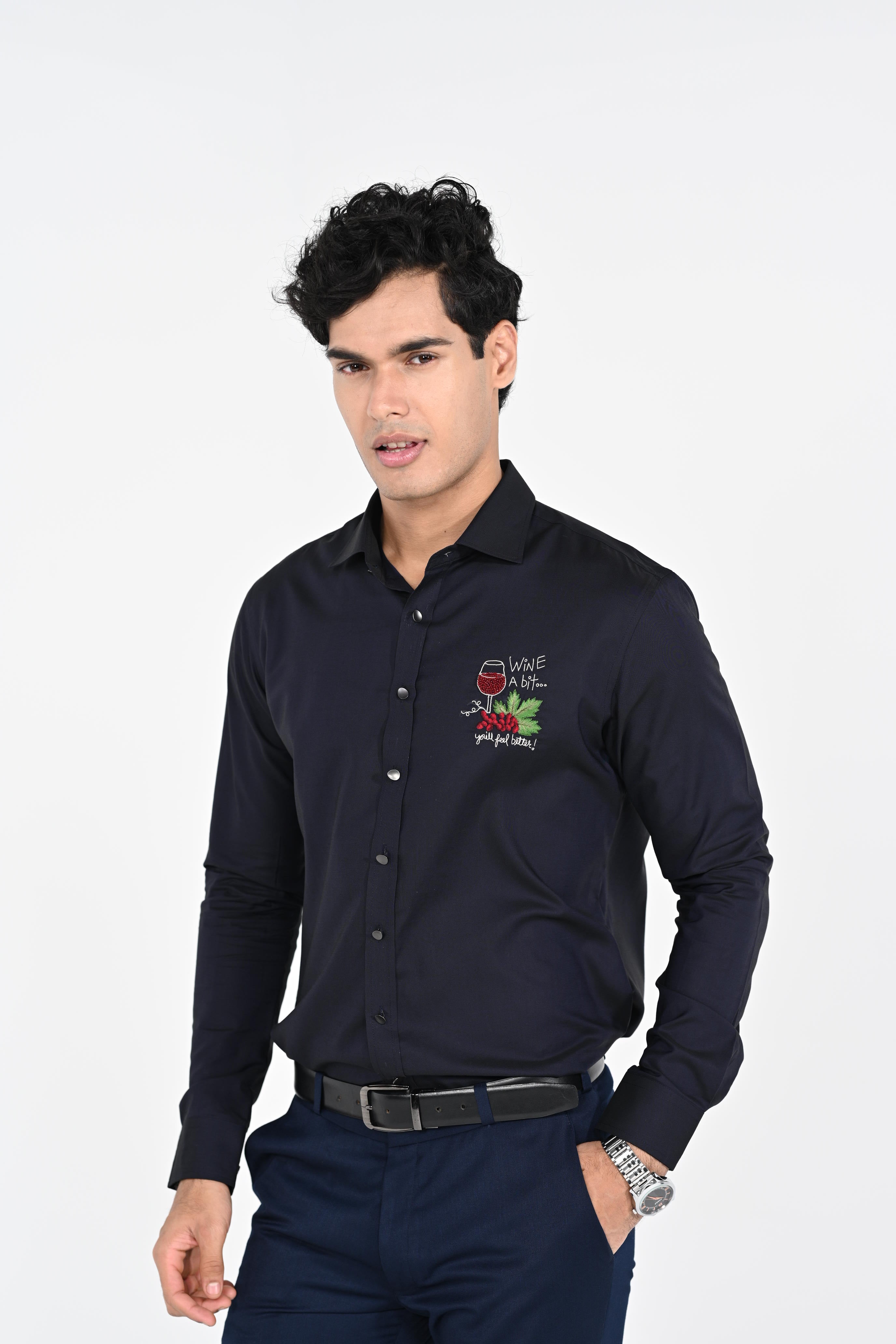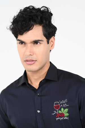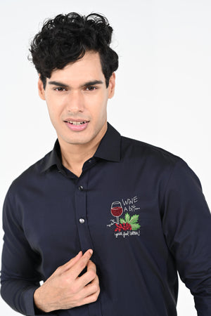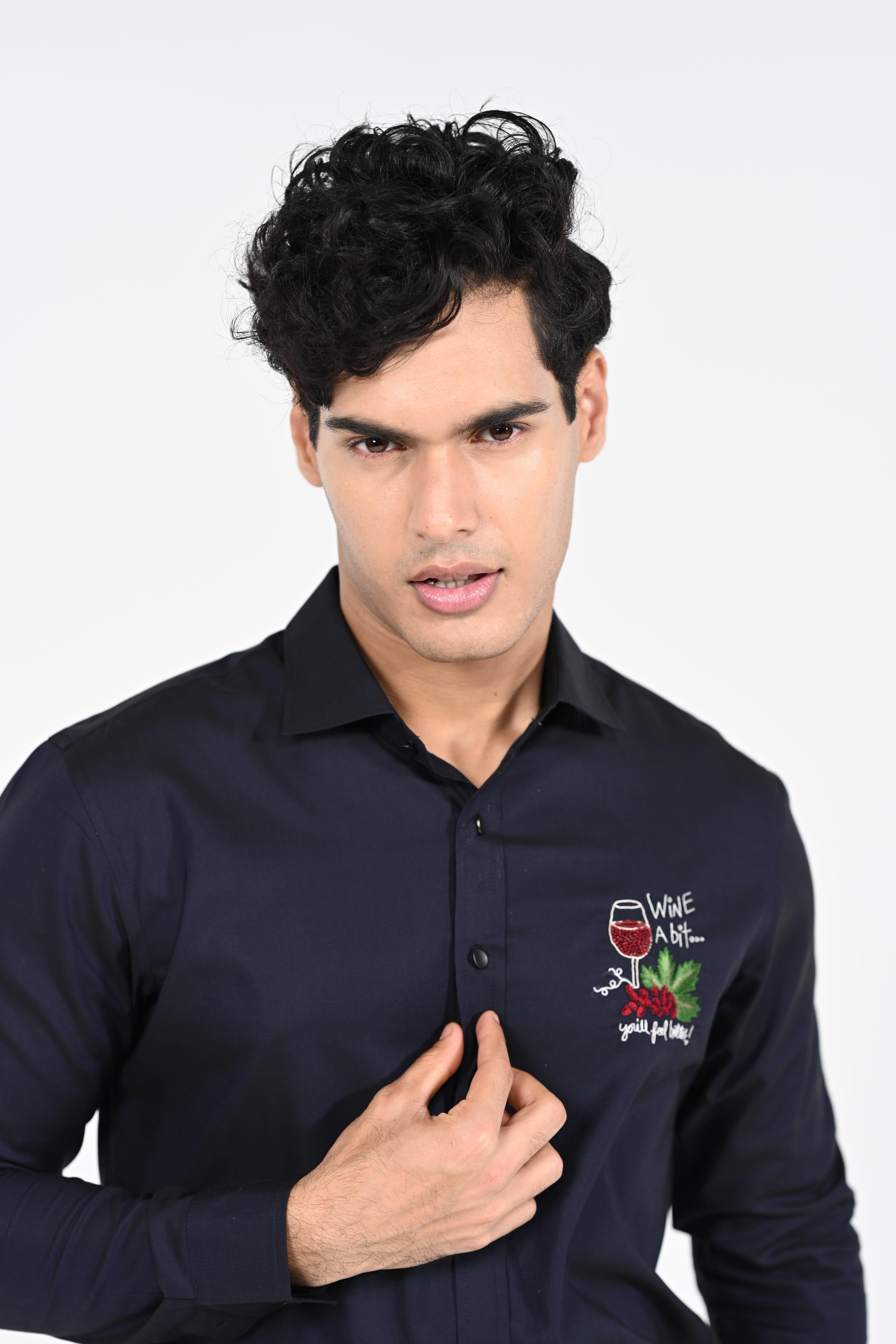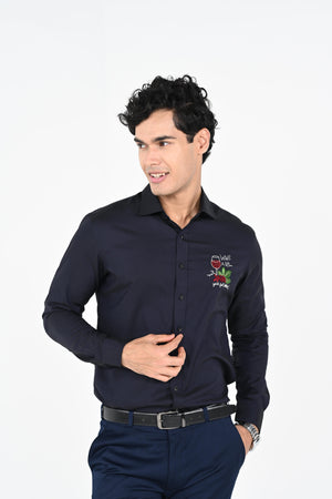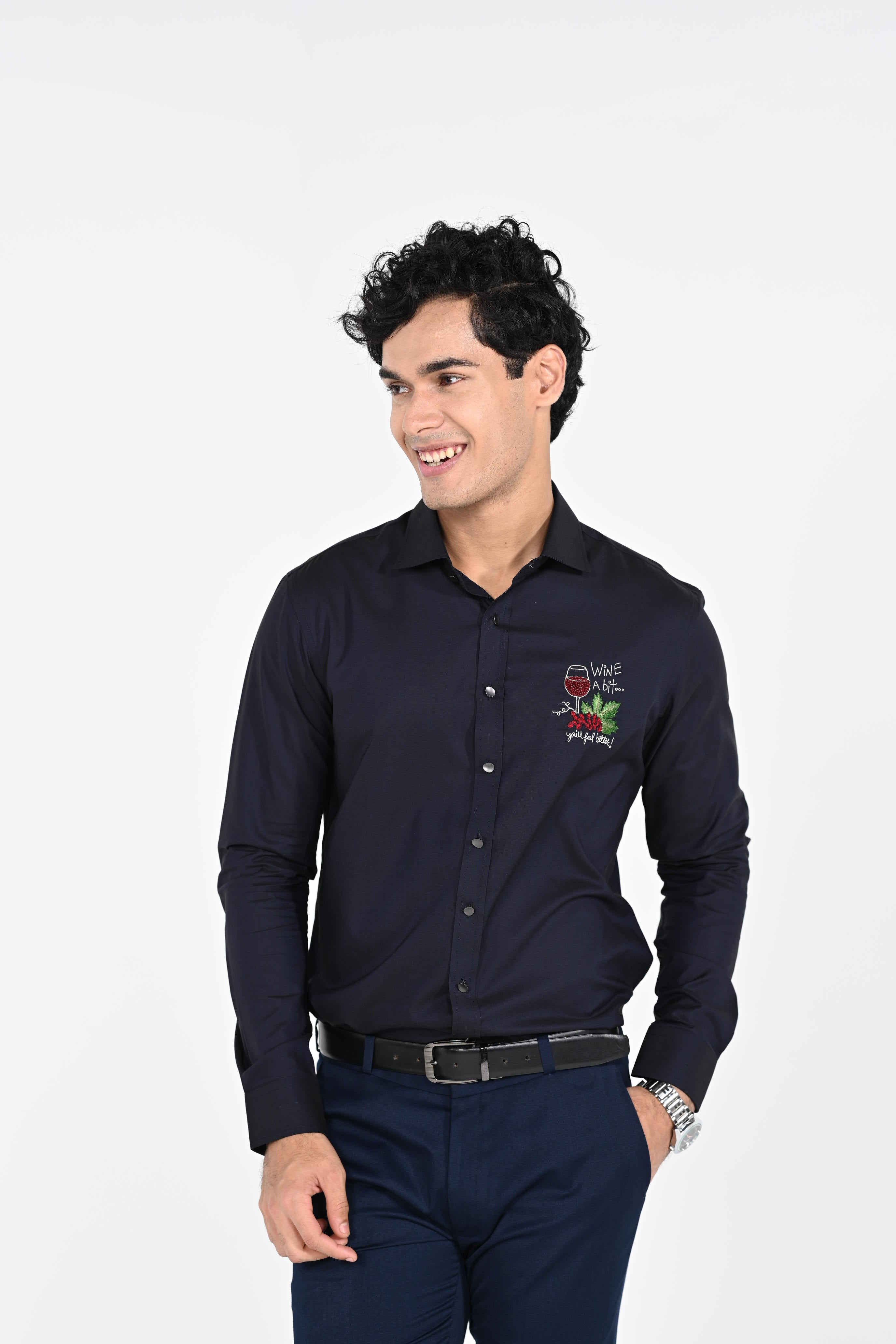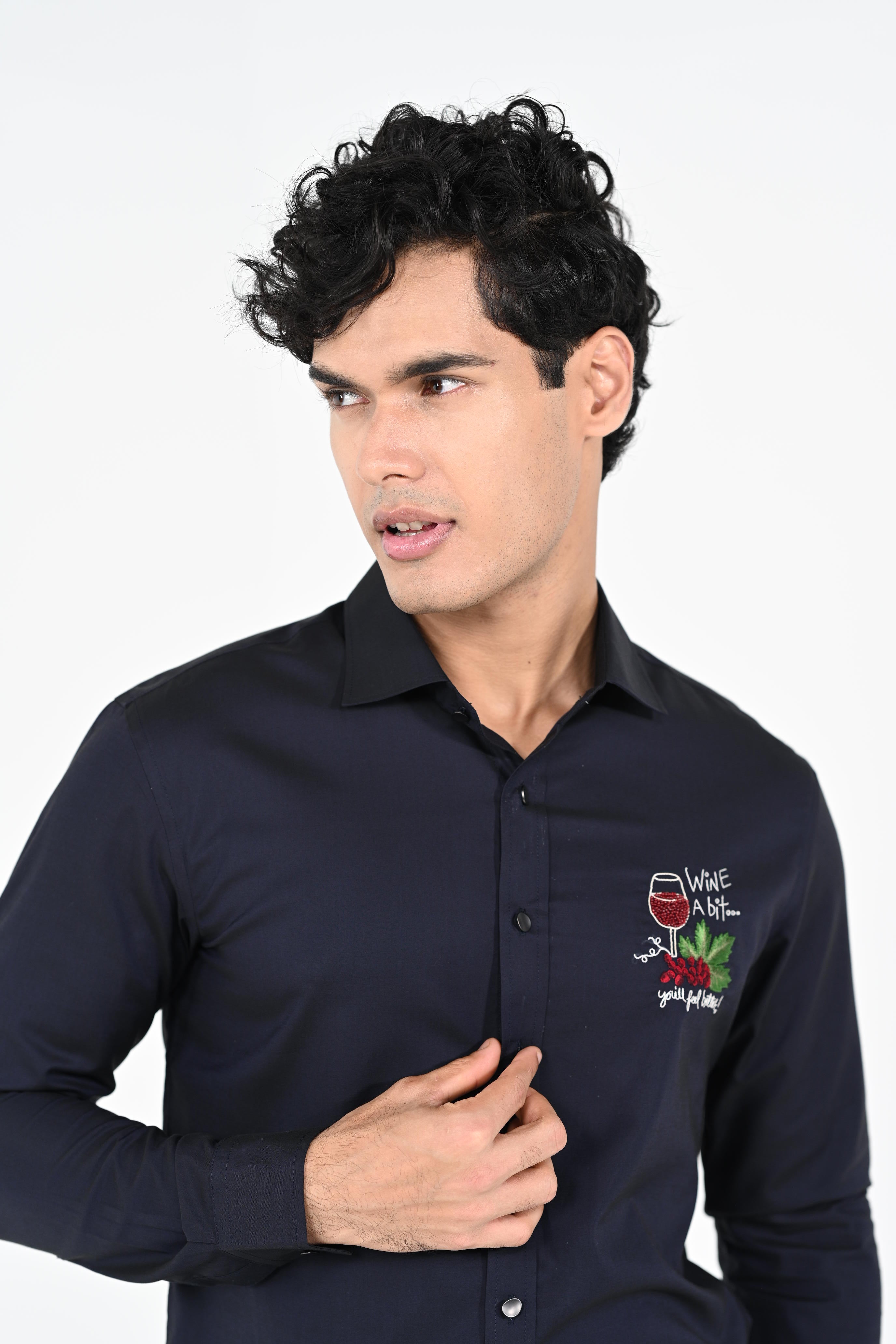 Featuring a Navyblue hand embroidered with thread,salma and chid ,shirt cotton strech base fabric .This contains only one piece. Color of the actual garment may vary due to lighting conditions during the shoot .