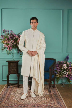 Fabric: Dupatta-Linen Satin, Kurta & Pant-Chanderi, Sherwani-Lucknowi Fabric