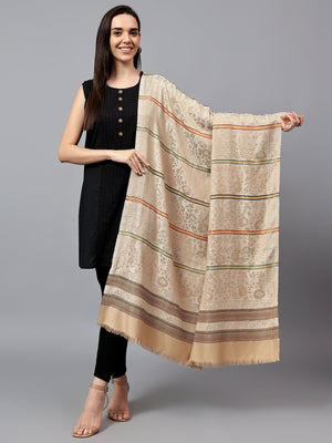 Women Fine Wool Beige Designer with zari weave Soft & Warm Shawl