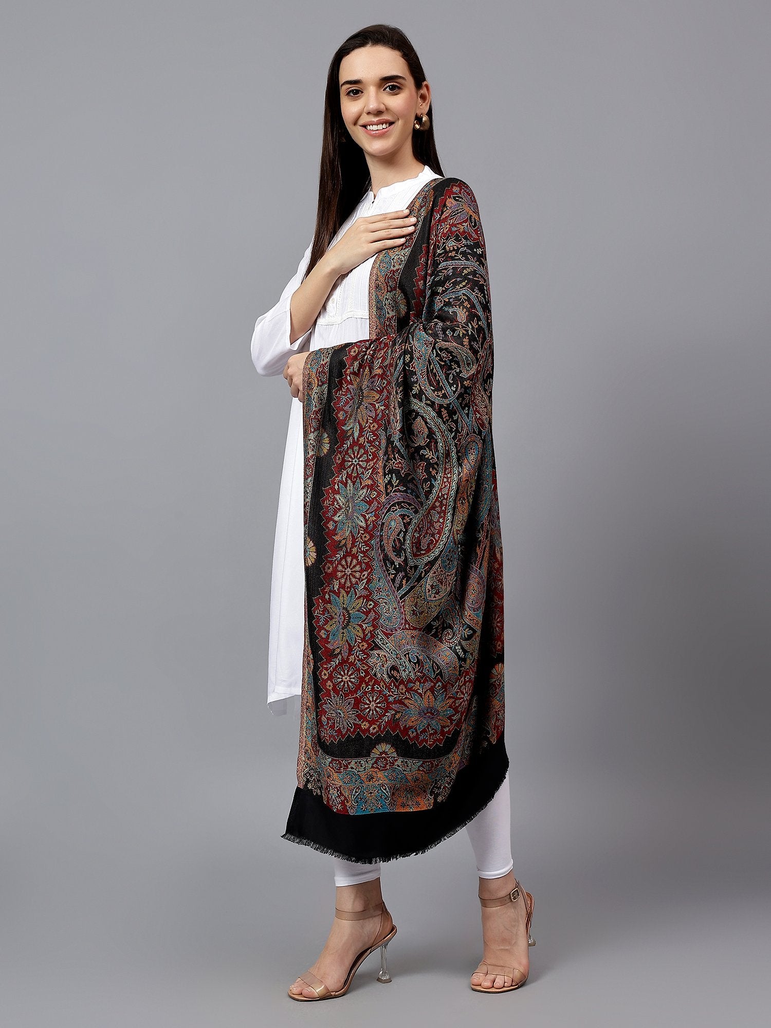 Women Fine Wool Modal Paisley Jaal Designer Soft & Warm Stole