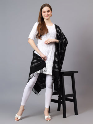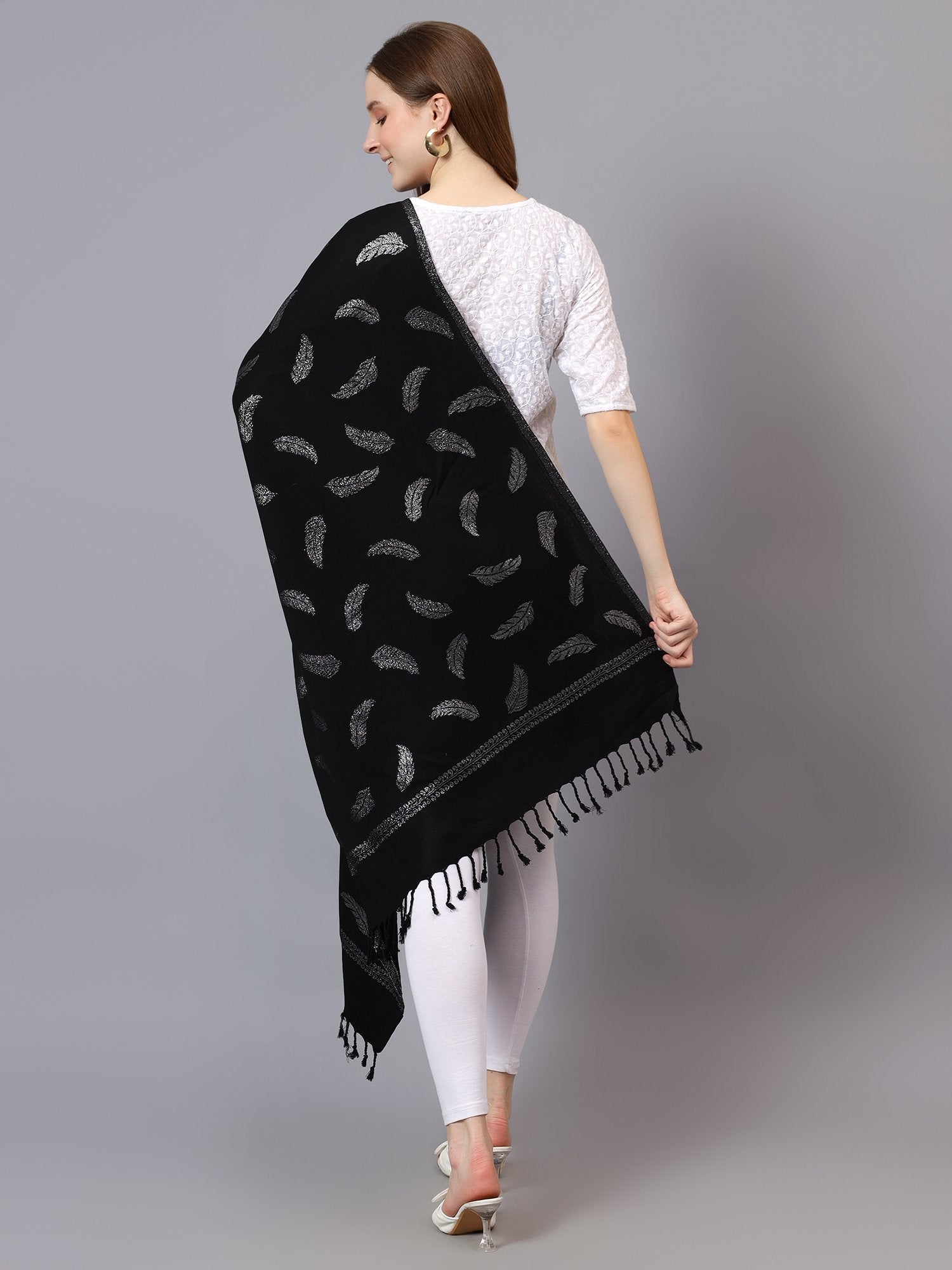 Women Fine Wool Metallic Zari Leaf Design soft Warm Stole